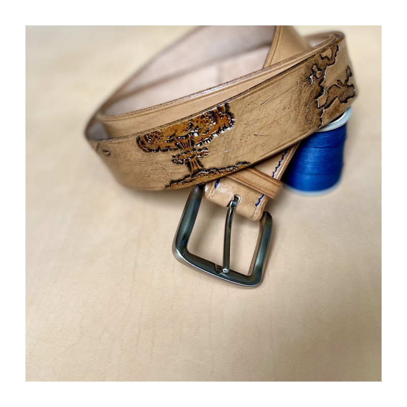 Ceinturon sellier exclusivement réalisé à la main dans le respect des traditions anciennes :
